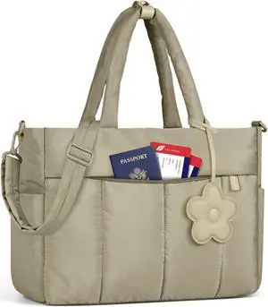 RAINSMORE Laptop Tote Bag for Women 15.6 Inch Lightweight Puffer Tote Bag Work Bag Quilted Travel Tote Bags with Shoulder Strap Large Computer Briefcase Teacher Bag Nurse Bag for Casual Office Travel