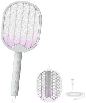 Electric Fly Swatter Racket 2 in 1, Rechargeable,Foldable, Indoor Home Backyard Patio Camping(White)