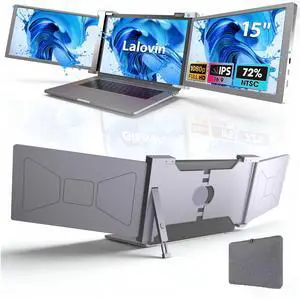 Lalovin Laptop Screen Extender, 15" 1080P IPS FHD Triple Monitor for 15"-17.3" Laptops, Plug & Play Portable Monitor Extender with USB-C/HDMI/USB-A for Mac/Windows/Chrome/Android,Gray