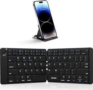 Samsers Foldable Bluetooth Keyboard - Portable Wireless Keyboard with Stand Holder, Rechargeable Full Size Ultra Slim Folding, Compatible iOS Android Windows Smartphone Tablet and Laptop - Black