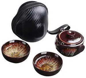 Portable Kung Fu Tea Set, Jianzhan Tea Cup Set, Including 1 Storage Bag, 1 Teapot, 2 Cups