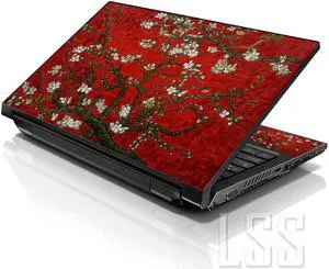 LSS 15 15.6 Inches Laptop Notebook Skin Sticker with 2 Wrist Pads - Reusable Cover Protector Vinyl Sticker Cover Decal Fits 13" - 16" - Red Almond Trees Pattern