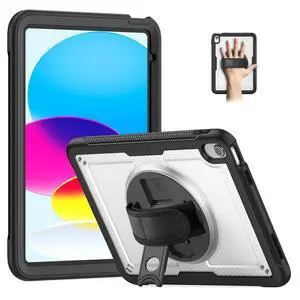 Loyrina Case for iPad (A16) 11th Generation 11 inch 2025 Lightweight Rugged Dual-Material Design, 360 Rotating Adjustable Hand Strap, Foldable Kickstand, Durable with Full Protection,Transparent