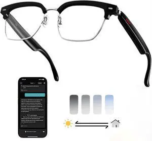 AI Smart Wireless Bluetooth Translation Glasses for Men/Women with Speakers/Bluetooth&140+ Languages Translation Sports/Travel/Drive/Busniess (E8+AI+Color Change Lenses+Silver)