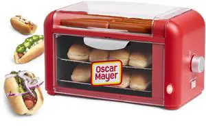 Oscar Mayer Extra Large 8 Hot Dog Roller & Bun Toaster Oven, Stainless Steel Grill Rollers, Non-stick Warming Racks, Perfect for Dogs, Veggie Sausages, Brats, Adjustable Timer, Red
