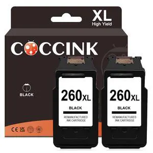 COCCINK 260XL Black Ink Cartridge Replacement for Canon PG-260 XL Compatible Pixma TS5300 TS5320 TS6400 TS6420 TS6420a TR7000 TR7020 TR7022 TR7022a Printer for Canon 260 XL Combo Pack(2 Black)