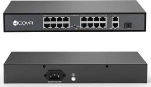 4COVR 16 Ports 120W(AC100-240V) Ethernet PoE Switch, 2X Uplink Gigabit RJ45 Ports, Support 4K 8MP 5MP PoE IP Security Cameras, 802.3af/at Compliant, Metal Plug and Play, Lightning Protection, LY-POE16