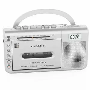 Portable Cassette Player with AM/FM Radio, 3.5mm Headphone Jack, Built-in Microphone