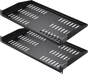 Tecmojo 1U Rack Shelf, 14 inch Depth, Anti-Slip Stops, Server & Network Shelf for 19 in Equipments, 110lbs Vented Capacity, No Lip (2 Pack)