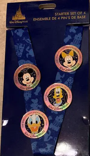 Disney Parks 50th Anniversary Starter Pin 4 pc Set w/ Lanyard NEW factory sealed