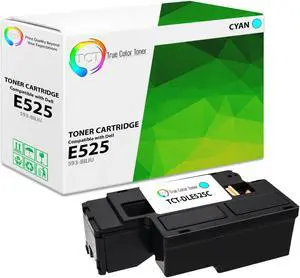 True Color Toner E525 Cyan Toner Cartridge - Premium Compatible Replacement for Dell 593-BBJU Cyan High Yield Works With Dell 525 E525 E525W 525w Color Laser