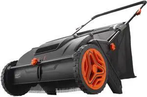 Push Lawn Sweeper, 21inch Leaf & Grass Collector, Strong Plastic Wheels & Heavy Duty Thickened Steel Durable to Use with Large Capacity 3.5 cu. ft. Mesh Collection Hopper Bag, 2 Spinning Brushes
