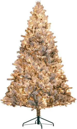 7.5 ft Pre-Lit Mountain Pine Artificial Christmas Tree, Snow Flocked Christmas Tree, Hinged Xmas Tree with 500 LED Lights and 1264 Branch Tips for Holiday Party Decoration, Green