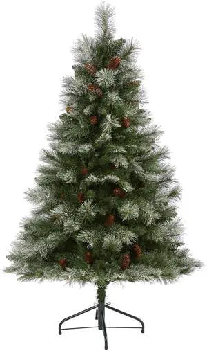 Nearly Natural 5' Snowed French Pine Xmas Tree w/387 Tips and Pine Cones