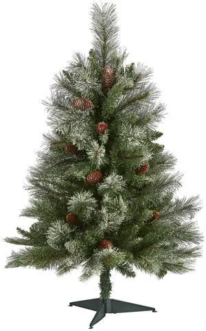 Nearly Natural 3' Snowed French Pine Xmas Tree w/135 Tips and Pine Cones