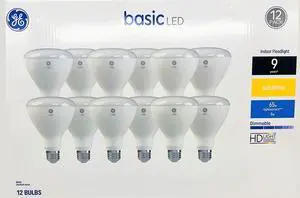 (12 pack) GE basic LED BR30 Indoor Floodlight, 8 watt, 650 lumen (65 watt equivalent), soft white, HD Light, Dimmable