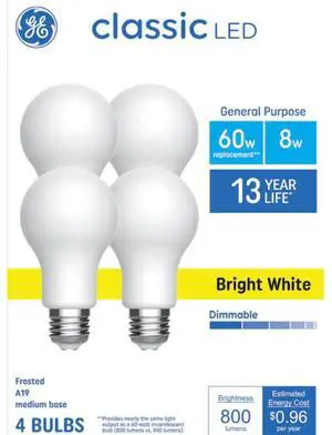 GE Classic 60-Watt EQ A19 Bright White Medium Base (e-26) Dimmable LED General Purpose Light Bulb (4-Pack) Item #5667559 Model #93131617