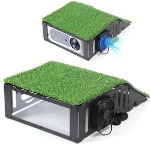 Golf Simulator Projector Enclosure with Cooling Fan & Artificial Turf ^^ Floor-Mounted Protective Cover for Enhanced Projector Protection