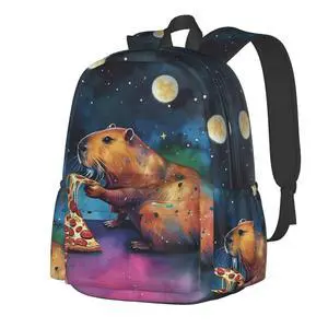 UEQIKI Watercolor Capybara Lightweight Travel Backpack With Zipped Front Pocket Printed Laptop Bag Fashion Casual Daypack For Work, Hiking, Camping Unisex