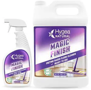 Hygea Natural Magic Finish Natural Enzyme-Based no rinse Floor Cleaner eats away grease buildup in tile and grout- Biodegradable formula Ready to use 24oz Spray + Refill