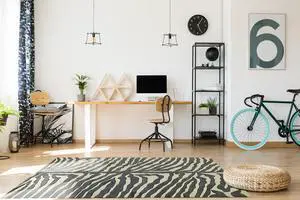 Handwoven Wool Black Contemporary Geometric Punja Kilim Rug, Made in India