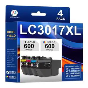 MANNERES LC3017XL High Yield Ink Cartridges Replacement for Brothe LC3017XL Work with MFC-J5330DW MFC-J6530DW MFC-J6730DW MFC-J6930DW Printer (1Black/1 Cyan/1 Magenta/1 Yellow)