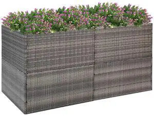 vidaXL Garden Planter Grey Steel frame, PE rattan Large Planters