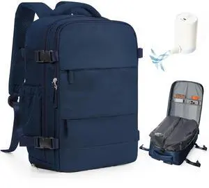 WEPLAN Vacuum Backpack Travel with Pump,Travel Backpack with Vacuum System, Shoe Compartment,United Airlines Personal Item Bag 17x10x9,Mochila compresion al vacio,Navy Blue