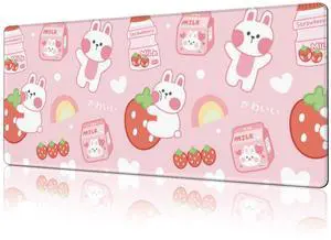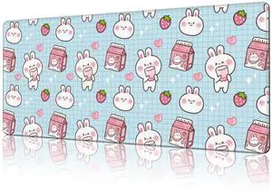 KEHIPI White Kawaii Cats E-Sport Mouse Pad Large Desk Mat Non-Slip Rubber Base Stitched Edge Keyboard Mouse Pad for Office Home E-Sport Computer Laptop, 31.5×11.8 Inches