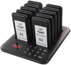 LOUKIENE Restaurant Pager System, 10 Wireless Pagers, Touch Keyboard Calling Customers Waiting Beepers with Vibration Flash and Buzzer for Queue in Food Trucks Churches Bar Shop Hotels Eatery