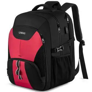 LIWAG Extra Large Laptop Backpack for Women,Womens Business Travel Backpack with USB Port,Anti Theft Water Resistant College Daypack Padded Computer Bag Fits 17.3Inch Laptop Notebook,Red