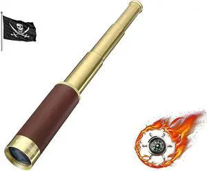 Retro Pirate Telescope Zoomable 25x30 Pocket Monocular Portable Collapsible Waterproof Captain Jacks Spyglass Handheld Telescope Vintage Telescope for Kids With Rudder Compass