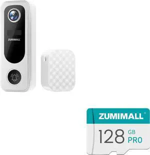 ZUMIMALL Doorbell Camera Wireless, Video Doorbell Wireless with Chime&SD, 2 Way Audio, Voice Changer, 30s Voice Message, Anti-Theft, AI Detection, 2.4Ghz WiFi, Battery Powered, Work with Alexa, White