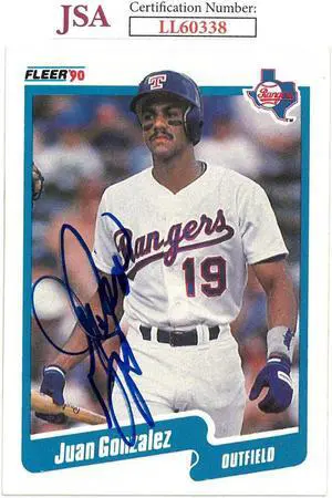 Juan Gonzalez signed 1990 Fleer Baseball Card #297- JSA #LL60338 (Texas Rangers/On Card Auto)