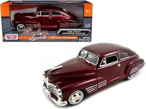 1948 Chevrolet Aerosedan Fleetline Dark Red Metallic 1/24 Diecast Model Car by Motormax