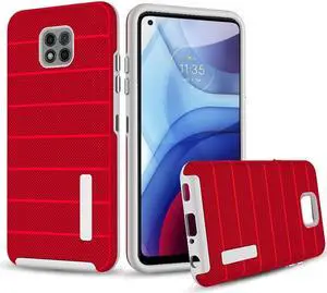 Brushed Textured Dual Layer Hybrid Case with Kickstand for Motorola Moto G Power 2021 - Red