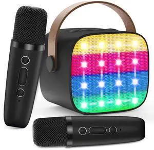 Karaoke Machine for Kids Adults, Portable Mini Bluetooth Speaker with 2 Wireless Microphones, LED Lights, Singing System for Family Home Party, Voice Changer, Boys Girls Karaoke Machine with Speaker