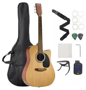 Pyle Beginner Acoustic Guitar Kit, 1/4 Junior Size All Wood Instrument for Kids, Adults, 30" Black Matte