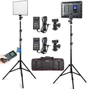 VILTROX Paquete de 2 luces LED de video con soporte de luz y control remoto inalámbrico, 30 W/2450 Lux regulables 3300K-5600K luces LED CRI 95+ para fotografía, video, retrato, conferencia,