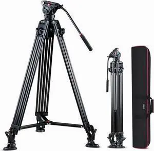 VILTROX VX-18M - Trípode de video pesado con cabezal fluido VT-01, trípode de video de cabeza fluida de 74 pulgadas, pies de goma antideslizantes para una máxima estabilidad de 22 libras