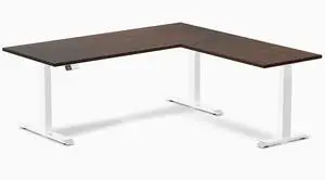 Desky Rubberwood L-Shape Sit Stand Desk - Dark Walnut / 72 x 30 x 70 x 24 in / White