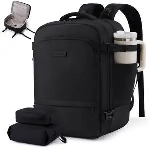LOVEVOOK Travel Backpack for Women & Men, Carry On Backpack with Cup Holder, Personal Item Travel Bag Flight Approved with Padded Laptop Compartment, Weekender Daypack With 2 Cubes, 17.3 Inch Black