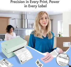 NASA Bluetooth Thermal Shipping Label Printer: 4x6 Wireless Label Maker with Tape for Small Business - Compatible with iPhone, Android, Windows & Mac Green