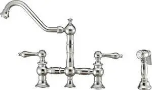Vintage III Plus Bridge Faucet with Long Traditional Swivel Spout, Lever Handles and Solid Brass Side Spray - Polished Chrome
