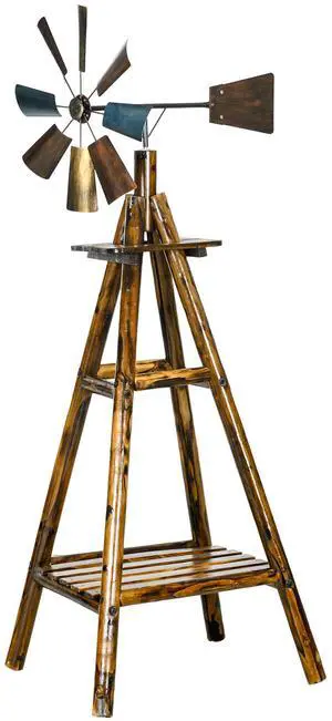 Aosom Windmill Weather Vane, Wind Vane with Bottom Shelf, Steel Windmill Head, Stained Wood