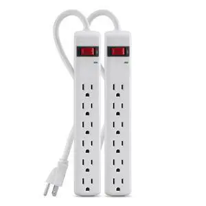 6-Outlet Power Strip Surge Protector with 3-Foot Power Cord, 300 Joules, White