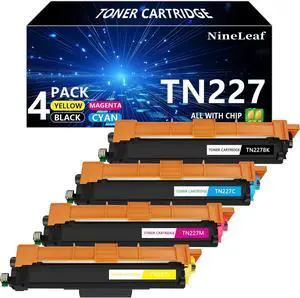 NineLeaf TN227 BK/Y/M/C Toner Cartridge Set Compatible for Brother TN-227 TN223 TN-223 Work with HL-L3230CDN DCP-L3550CDW MFC-L3770CDW HL-L3210CW Printers ( 4 Pack, Black, Cyan, Magenta, Yellow)