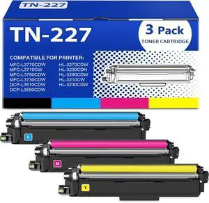 TN227 TN-227 Toner Cartridge 3 Pack Cyan, Magenta, Yellow Replacement for Brother TN227 High Yield Color Toner Set for HL-L3210CW, HL-L3230CDW, MFC-L3750CDW Printer