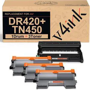 3x TN450 TN-450 Toner + 1x DR420 High Yield Cartridge Compatible for Brother HL-2220