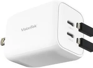 VisionTek GaN II 65W Wall Fast Charger - Dual USBC Port - 2X USB-C - Compatible with MacBook Pro/Air, Ipad, iPhone, Galaxy, Steam Deck, Thinkpad, Dell XPS, Pixel and More - 901536